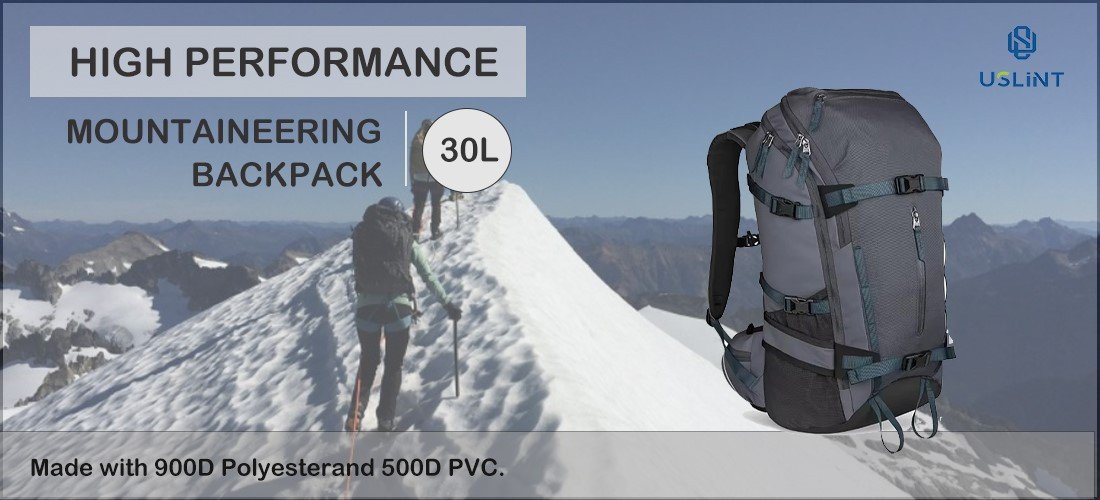 The size of the mountaineering backpack is 30cm * 17.5cm * 56cm (L * W * H), with a capacity of approximately 30L. It is equipped with multiple pockets and functional compartments, including a large main pocket that can be used to store clothes, and an internal compartment that can accommodate a 15-inch laptop; there is also a side pocket for holding goggles to reduce scratches; the side mesh pocket can be used to store items and other equipment; and the smaller zipper pocket can hold compasses, lip balm, snacks, etc. In addition, there is an extra water bag system compartment suitable for 3L water bags.