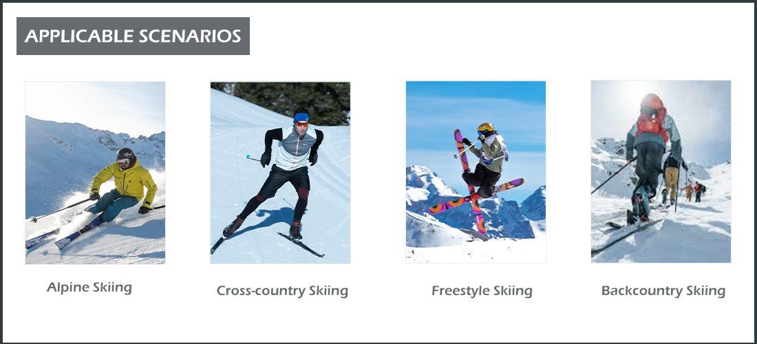 Suitable for various outdoor snow sports including alpine skiing, cross-country skiing, freestyle skiing, and paddleboarding.