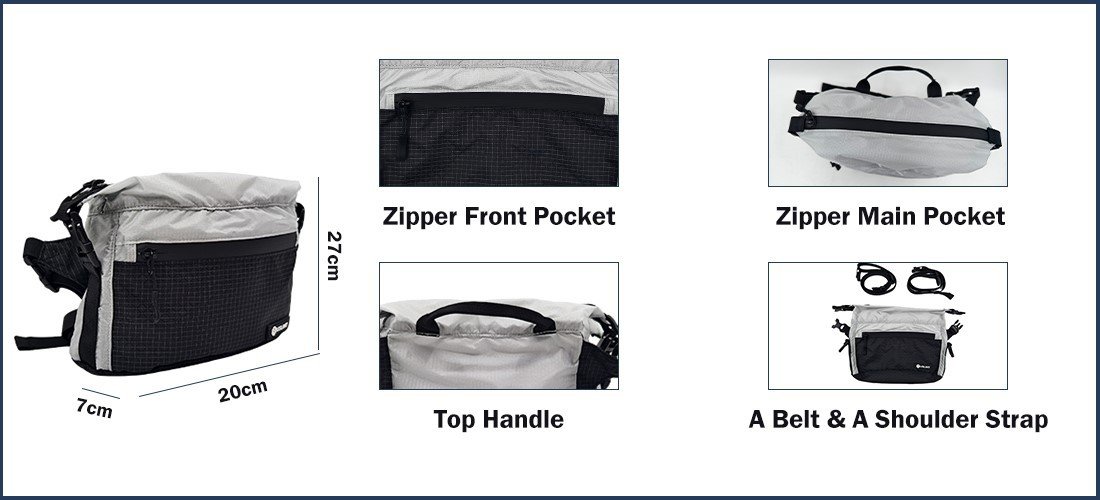 USLINT custom fanny packs are designed to meet the needs of various scenarios, including outdoor activities, sports, and casual everyday wear. Made with high-strength X-PAC fabric, the cuatom fanny packs are waterproof, abrasion-resistant, and tear-resistant. The compact 3L capacity (20×7×27cm) features a zippered main compartment and a zippered front pocket, easily accommodating essentials such as a phone, keys, and wallet. This fashionable custom fanny pack is versatile, functioning as both a fanny pack and a crossbody bag. Adjustable shoulder and waist straps accommodate different body types. We support ODM/OEM customization and offer Pantone color customization services to meet your individual needs and brand collaboration requirements.